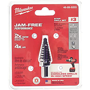 Las brocas Step Drill Milwaukee® con rendimiento JAM-FREE cuentan con un diseño de doble ranura que ofrece hasta 2 veces más tiempos de perforación, hasta 4 veces más de vida y hasta 50% más agujeros por carga de batería que sus competidores. Ideal para perforar orificios de pequeño y gran diámetro en acero y plástico, estas brocas están optimizadas para taladros inalámbricos a alta velocidad. La punta Rapid Strike ™ permite un inicio rápido y preciso que genera menos calor, lo que da como resultado una vida útil más prolongada.