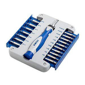 Incluye PH1, PH2, 0,4 mm x 2,5 mm, 0,5 mm x 3 mm, 0,8 mm x 4 mm, 1 mm x 5,5 mm y mango