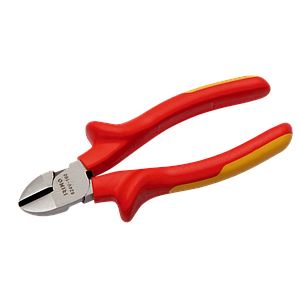 Los alicates corte diagonal son utilizados para cortar cables o alambres electricos, estos normalmente son solidos, tienen alta palanca por lo que el corte es suave, se recomienda que se corte lo mas pegado al centro para tener mayor fuerza. Los alicates VDE cumplen con la norma EN60900 que garantiza que estan probados a 10,000 voltios y certificados a 1,000 voltios AC y 1,500 voltios en DC.