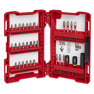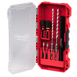 El kit incluye: (1) broca multimaterial de carburo de 5/32″ x 4″ x 6″ con hexágono interior, (1) broca multimaterial de carburo de 3/16″ x 4″ x 6″ con hexágono interior, (1) destornillador de tuercas para tornillos de hormigón SHOCKWAVE Impact Duty de 1/4″, (1) destornillador de tuercas para tornillos de hormigón SHOCKWAVEImpact Duty de 5/16″, (1) broca TORX SHOCKWAVE Impact Duty T25 de 2″, (1) broca TORX SHOCKWAVE Impact Duty T30 de 2″, (1) manguito de accionamiento