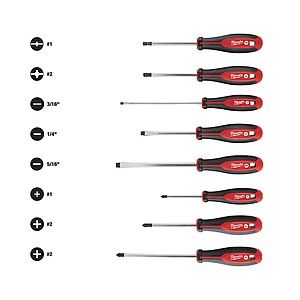 Incluye PH1, PH2, 0,4 mm x 2,5 mm, 0,5 mm x 3 mm, 0,8 mm x 4 mm, 1 mm x 5,5 mm y mango