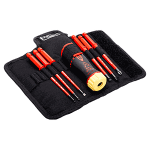 Destornillador a carraca de 1000 V con juego de varillas intercambiables, seis unidades
